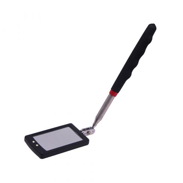 Miroir télescopique avec 2 lumières LED et poignée recouverte de plastique antidérapant